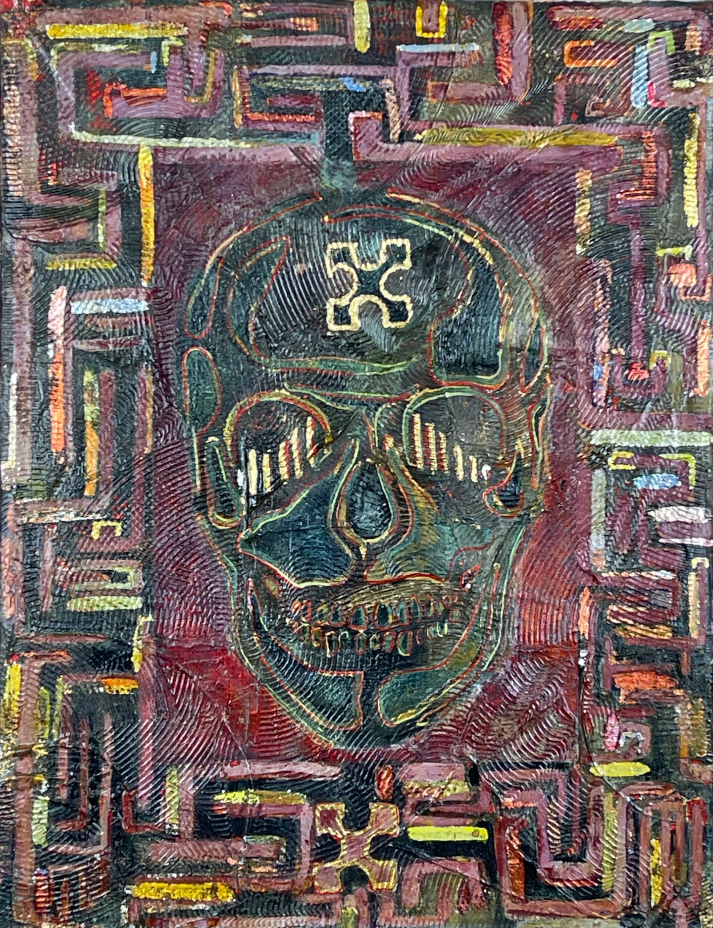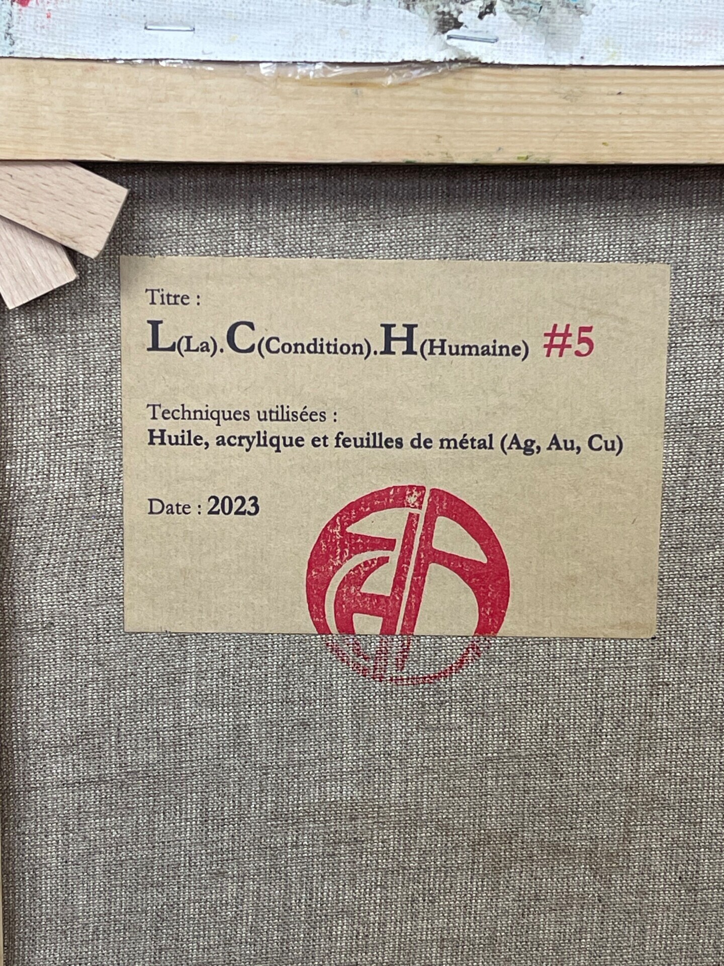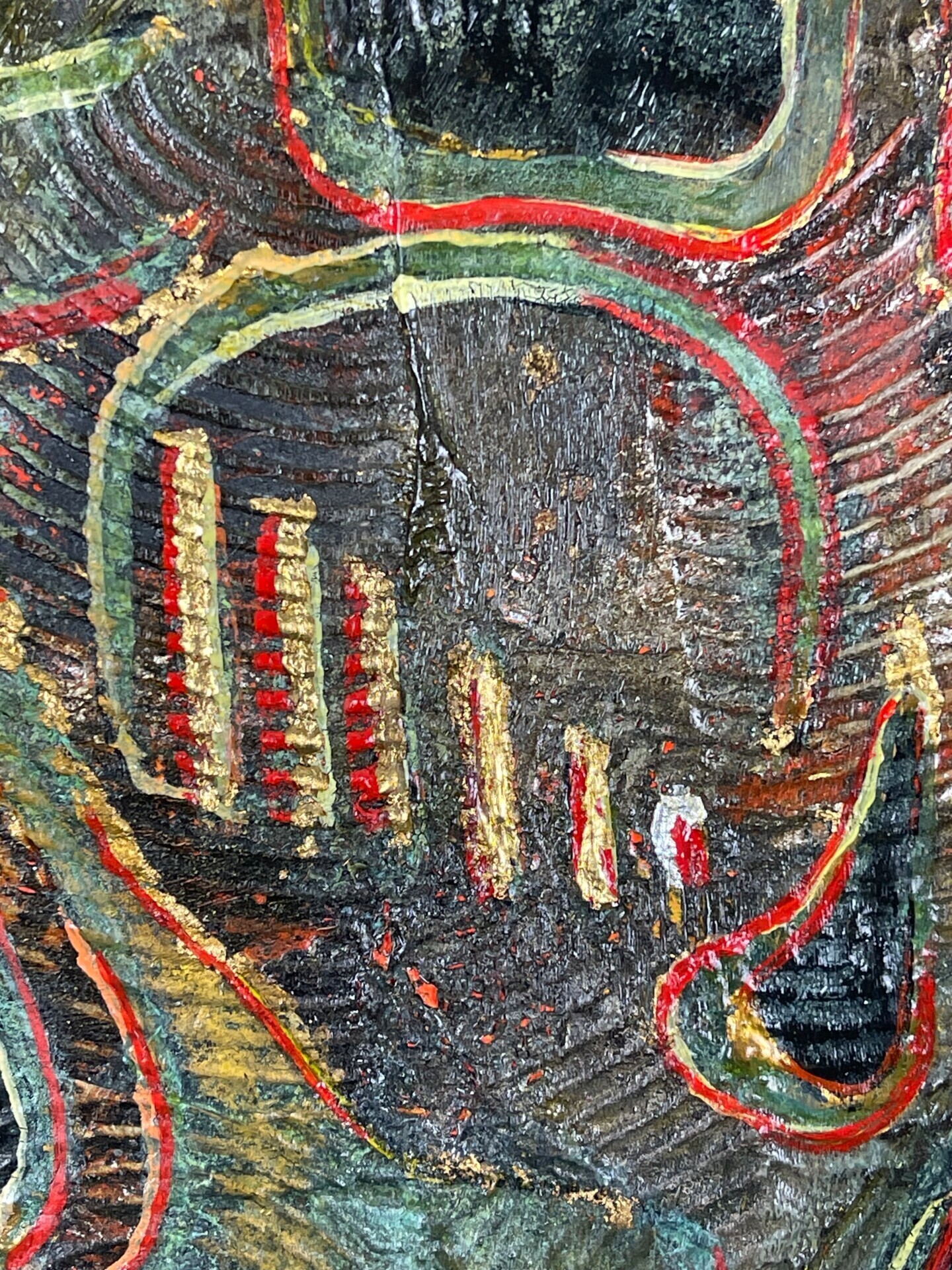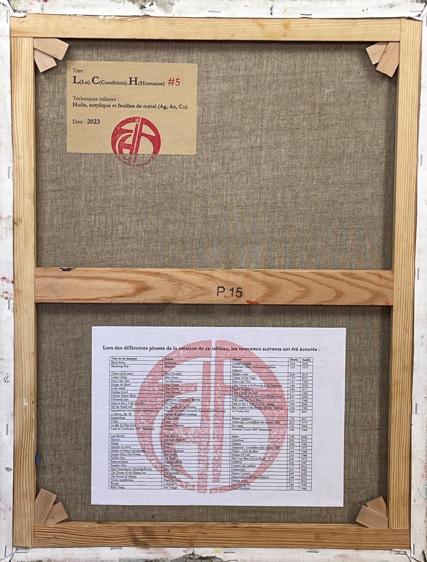 techniques mixtes : feuilles de métal or cuivre et argent. Peinture Huile et acrylique.